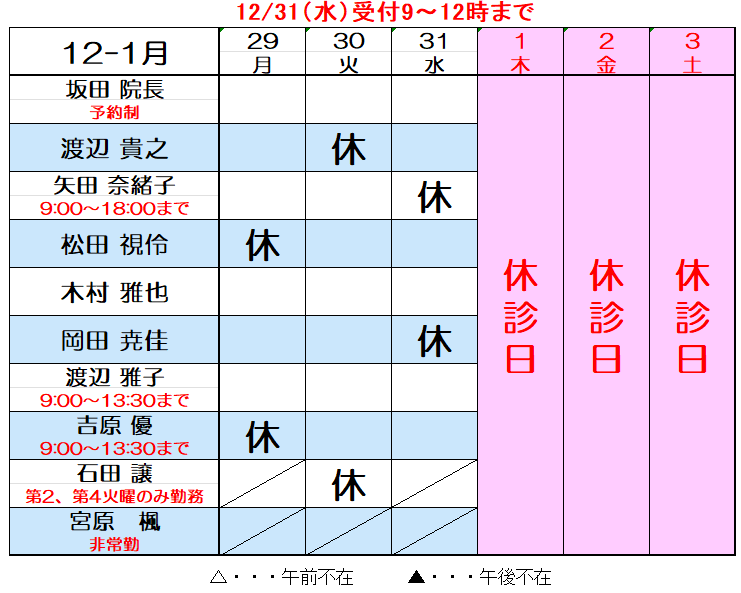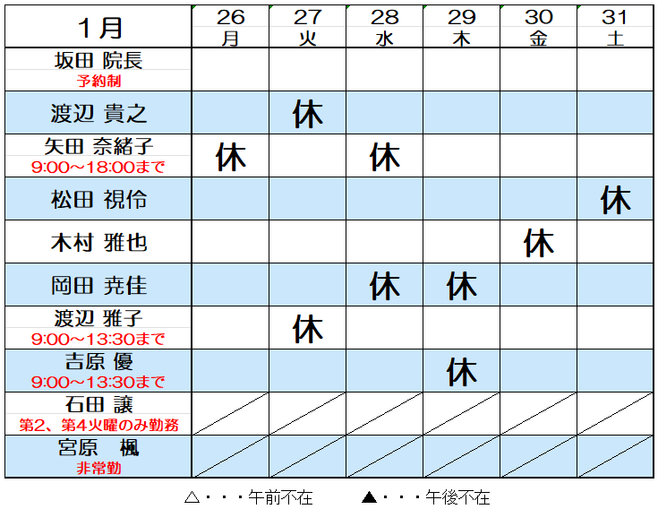 1月の獣医師出勤表(1/10更新)