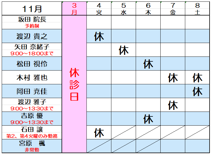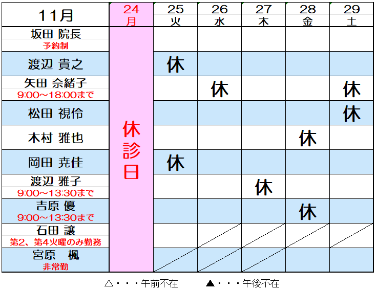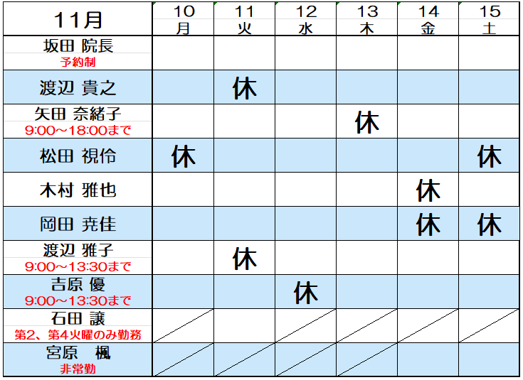 また、手術や処置中の場合、診察をお待ちいただくことがあります。あらかじめご了承ください。