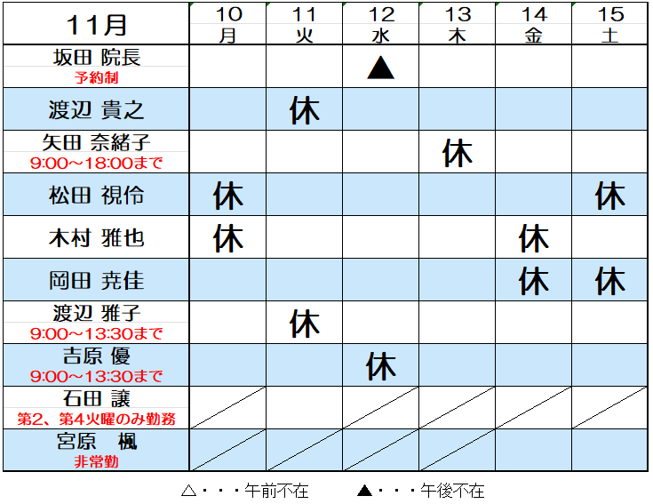また、手術や処置中の場合、診察をお待ちいただくことがあります。あらかじめご了承ください。