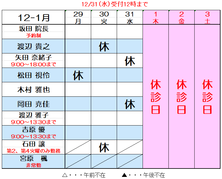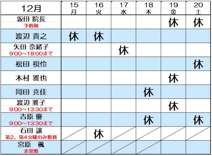 また、手術や処置中の場合、診察をお待ちいただくことがあります。あらかじめご了承ください。