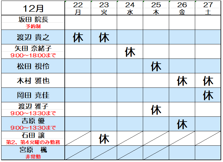 坂田院長の診察は予約制となっております。ご希望の方は事前にお電話にてご予約をお取りください。