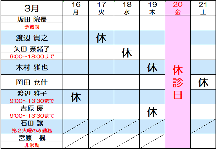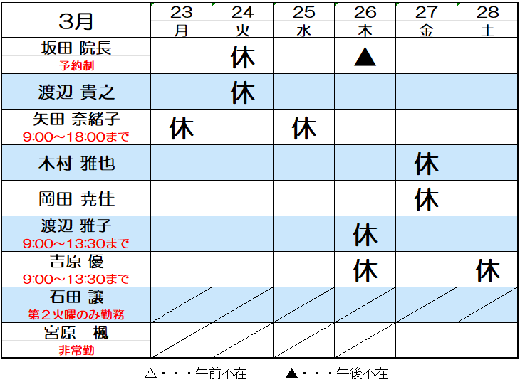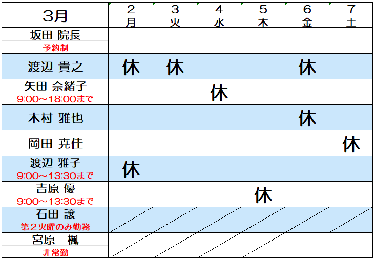 坂田院長の診察は予約制となっております。ご希望の方は事前にお電話にてご予約をお取りください。