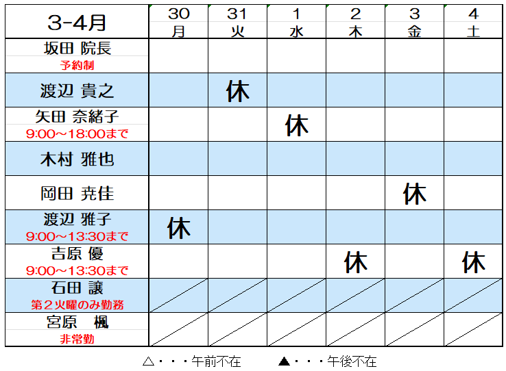 石田獣医師は第二火曜日のみ坂田動物病院で勤務になります。その他は見附動物病院での勤務になります。4月以降、見附動物病院のみの勤務になります。